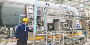 国信苏盐淮安盐穴压缩空气储能示范项目2号机组。 工作人员在2号机组检查设备。 江苏省淮安市,国信苏盐淮安盐穴压缩空气储能示范项目近日一次并网成功,并同步实现满负荷发电,…
