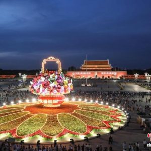 北京天安门广场“祝福祖国”巨型花篮亮灯