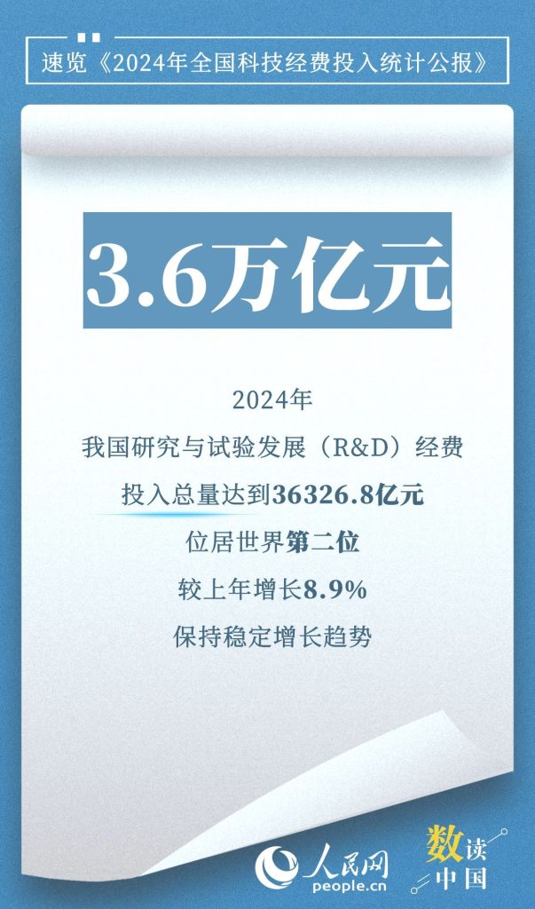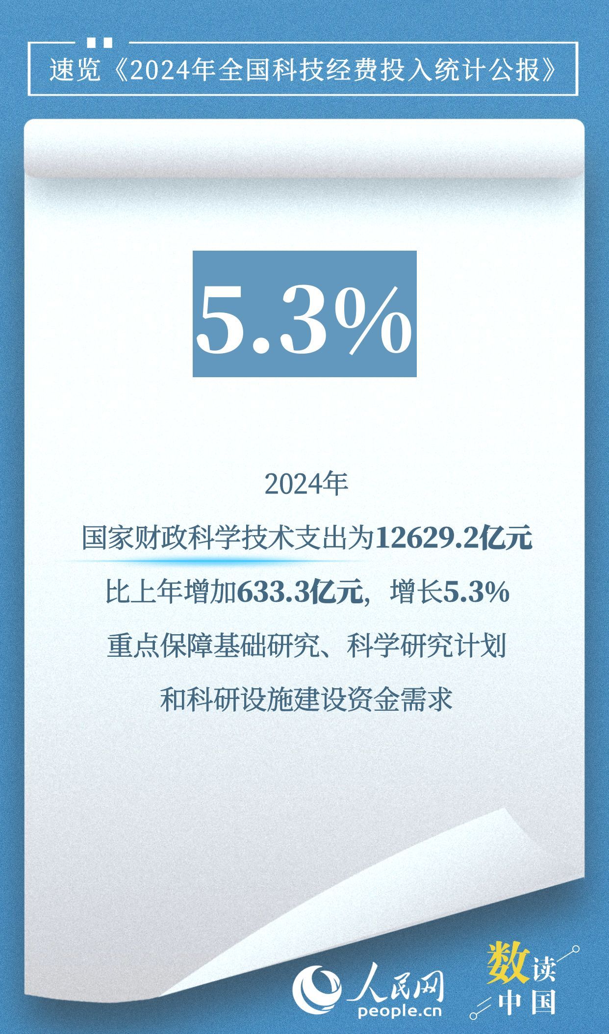 编者按:国家统计局、科学技术部、财政部日前联合发布的《2024年全国科技经费投入统计公报》显示,2024年,全国研究与试验发展经费投入保持稳定增长,投入强度较快提升,基础研究投入取得新突破,国家财政科技支出稳步增加。