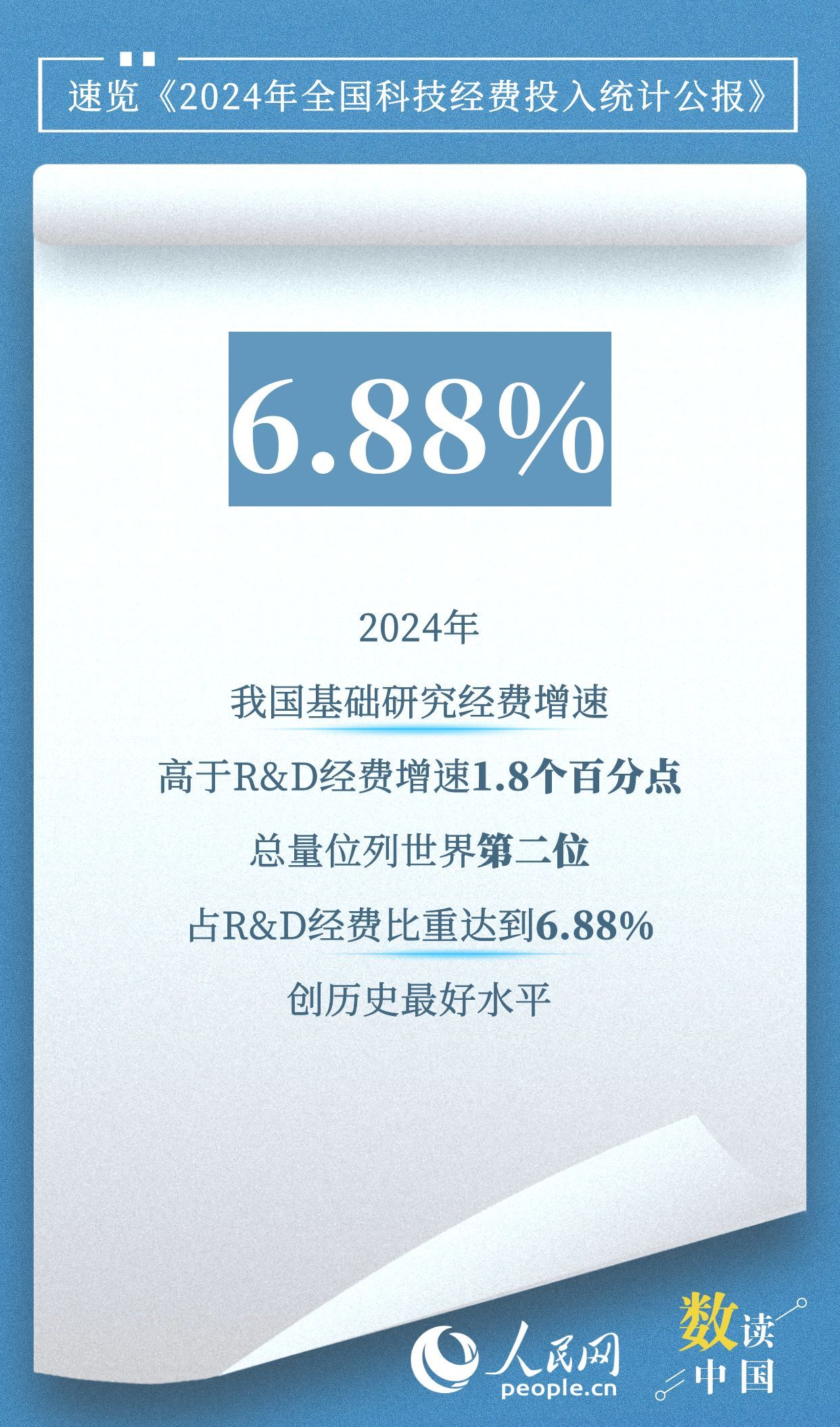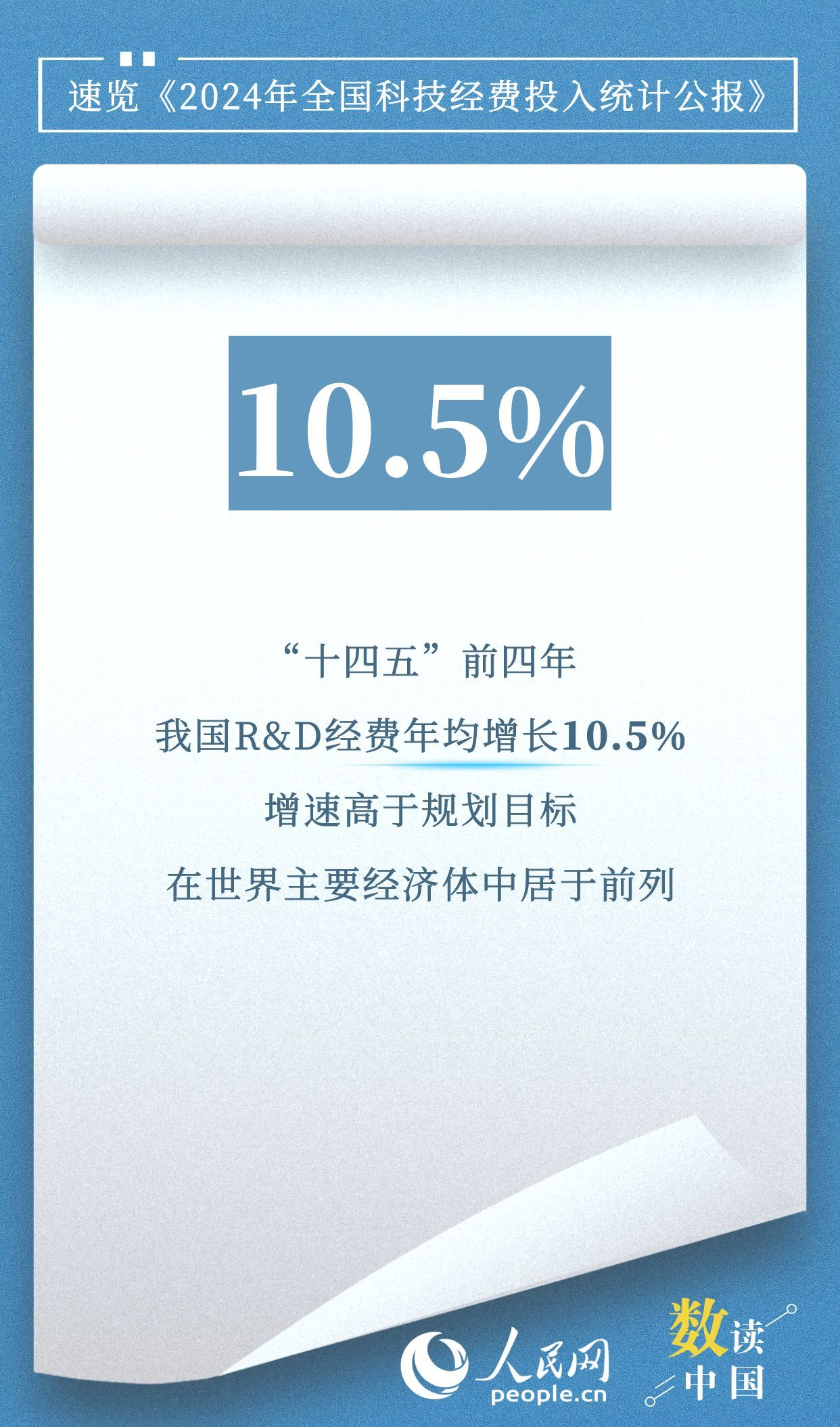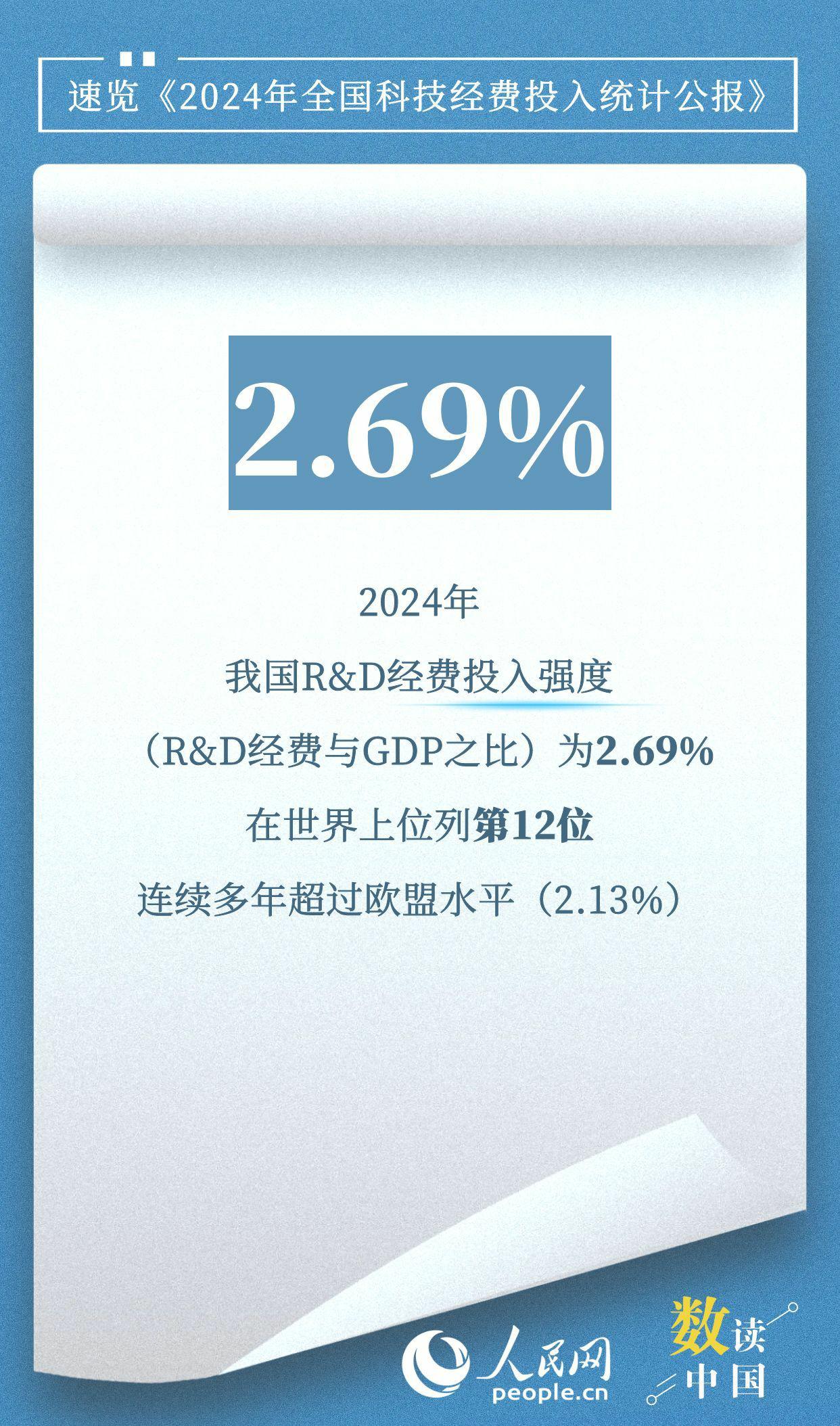 编者按:国家统计局、科学技术部、财政部日前联合发布的《2024年全国科技经费投入统计公报》显示,2024年,全国研究与试验发展经费投入保持稳定增长,投入强度较快提升,基础研究投入取得新突破,国家财政科技支出稳步增加。