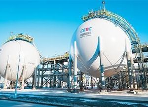 在中能建松原氢能产业园项目一期,15座巨大的储氢罐静静矗立,构成全球最大规模地面储氢系统。图为项目一期的储氢罐。 宋如栎摄 松花江畔,风机和光伏正齐齐出力,一端是新能源电力源源…