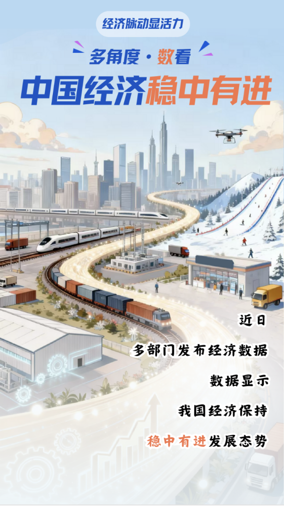 快递业务量突破1800亿件、西部陆海新通道班列累计发送集装箱货物达500.3万标箱、我国冰雪产业规模预计2025年将突破万亿元大关……近日,多部门发布经济数据,数据显示,我国经济保持稳中有进发展态势。