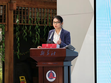 参考消息报社英文翻译一室副主任、主任编辑朱丽作了题为《世界乱云飞渡 中国坚定从容》的专题分享。她结合《参考消息》的全球报道视野,分析了当前国际形势的复杂变化,阐述了中国在应对全球性挑战中所展现的定力与担当。