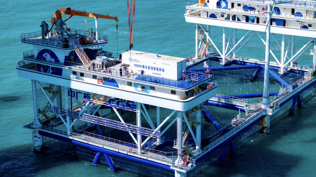 2024年12月,中广核可再生能源孤网海水直接制氢系统海上试验正式启动。(中广核供图 央广网发)
