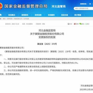 今日,河北金融监管局公布相关批复,同意河北银行股份有限公司(简称“河北银行”)受让北京建安特西维欧特种设备制造有限公司持有的冀银金融租赁股份有限公司(简称“冀银金租”)49286万…