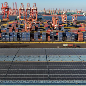这是12月25日拍摄的唐山市海港经济开发区一家企业厂房屋顶上的光伏发电板(无人机照片)。 近年来,河北省唐山市海港经济开发区坚持绿色发展理念,引导企业利用厂房屋顶建设分布式光伏…