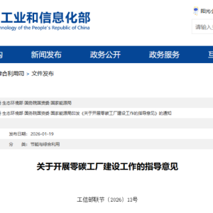 1月19日,工业和信息化部、国家发展改革委、生态环境部、国务院国资委、国家能源局联合印发《关于开展零碳工厂建设工作的指导意见》(工信部联节﹝2026﹞13号)的通知。 通知指出:2…