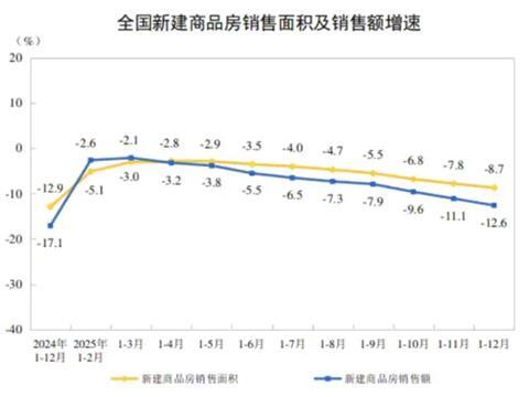 1月19日,国家统计局发布2025年全国房地产市场基本情况。数据显示,全国房地产开发投资82788亿元,同比下降17.2%;新建商品房销售面积88101万平方米,同比下降8.7%;新建商品房销售额83937亿元,同比下降12.6%。各项指标显示,房地产行业仍处于深度调整过程中,在动态变化中逐步筑底。