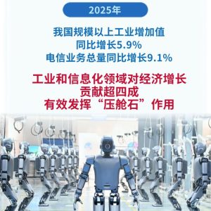 工业和信息化部副部长张云明1月21日在国新办举行的新闻发布会上说,2025年,我国规模以上工业增加值同比增长5.9%,制造业增加值占GDP比重保持稳定,电信业务总量同比增长9.1%…