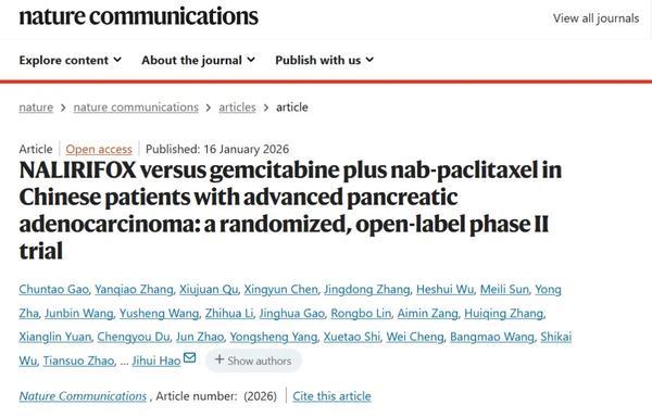 这是一项随机、开放、多中心的II期临床研究(NCT05047991),旨在评估NALIRIFOX对比吉西他滨联合白蛋白结合型紫杉醇一线治疗中国晚期胰腺癌患者的有效性和安全性。
