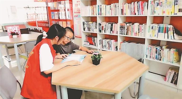 社区工作人员帮助孩子温习功课。
