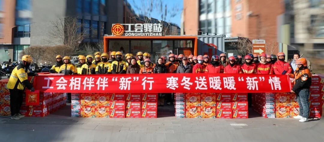 新春将至,岁暖情浓。2月2日下午,天津港保税区总工会联合天津港保税区新就业形态劳动者联合工会,在保税区复悦里工会驿站开展新就业形态劳动者“工会相伴伴‘新’行 寒冬送暖暖‘新’情”慰问活动,为区内200余名外卖员送上暖心物资与新春祝福。天津港保税区群团工作部部长、总工会主席、妇联主席王文芳,群团工作部副部长、总工会副主席遆洪亮为劳动者发放慰问品,传递工会组织的关怀与温暖。