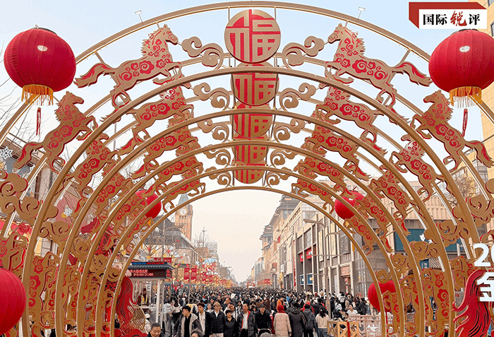 马年春节消费火热,是政策推动和超大规模市场优势共同作用的结果。去年底召开的中央经济工作会议把“坚持内需主导,建设强大国内市场”列为今年重点任务之首。春节前,中国商务部等9部门联合开展2026“乐购新春”春节特别活动,通过发放节日礼包等措施激发了内需潜能。对外经济贸易大学国家对外开放研究院教授吕越与《国际锐评》交流说,为顺应消费升级趋势、营造良好消费环境、用好长效政策工具,中国将持续放大“假日经济”效应,推动节日消费转化为长久的消费动力。