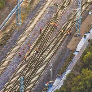近日,国能新朔铁路大准公司荣获“全国铁路系统先进集体”称号。据介绍,近年来,该公司实现运量跨越式增长,数智化改革提效降本成果丰硕。图为国能新朔铁路大准公司工作人员进行道岔检修作业。…