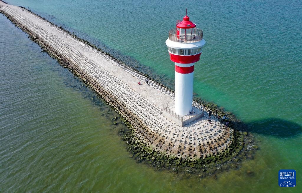 3月18日拍摄的琼海市潭门镇海边的灯塔(无人机照片)。新华社记者 郭程 摄