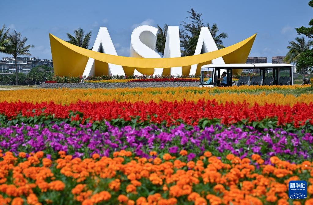 这是博鳌东屿岛上的博鳌亚洲论坛年会主题造景(3月18日摄)。新华社记者 郭程 摄