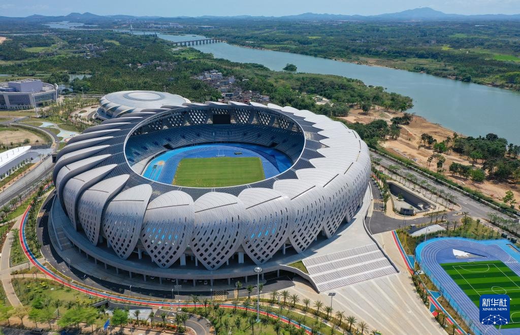 3月19日拍摄的琼海市文化体育中心(无人机照片)。新华社记者 郭程 摄