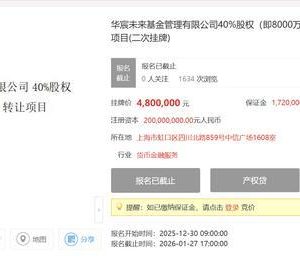 华宸信托再次挂牌转让华宸未来基金40%股权 挂牌价为480万元